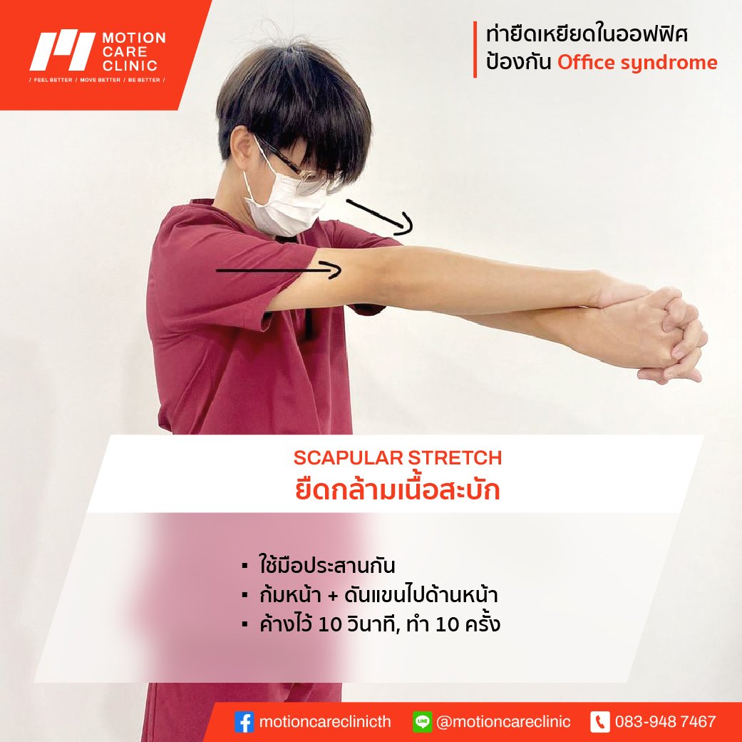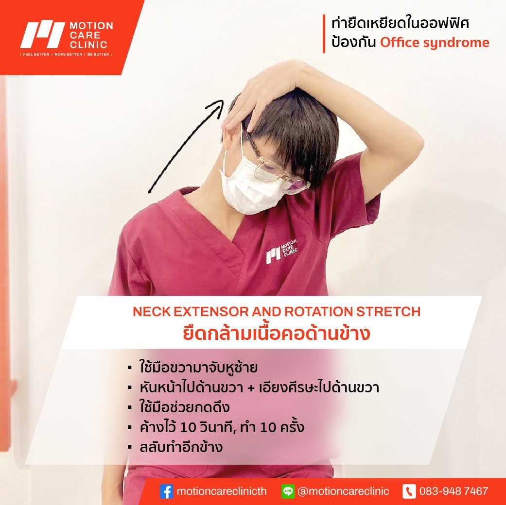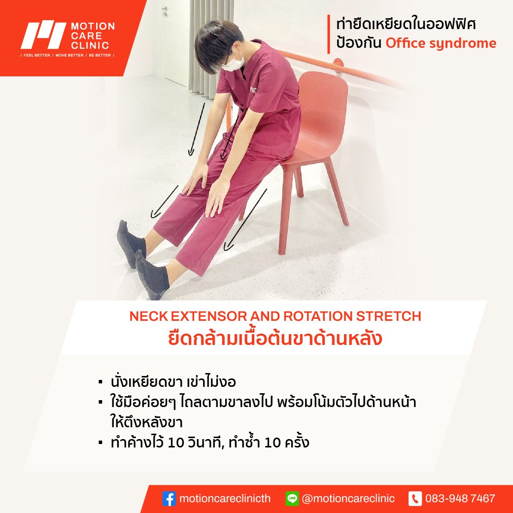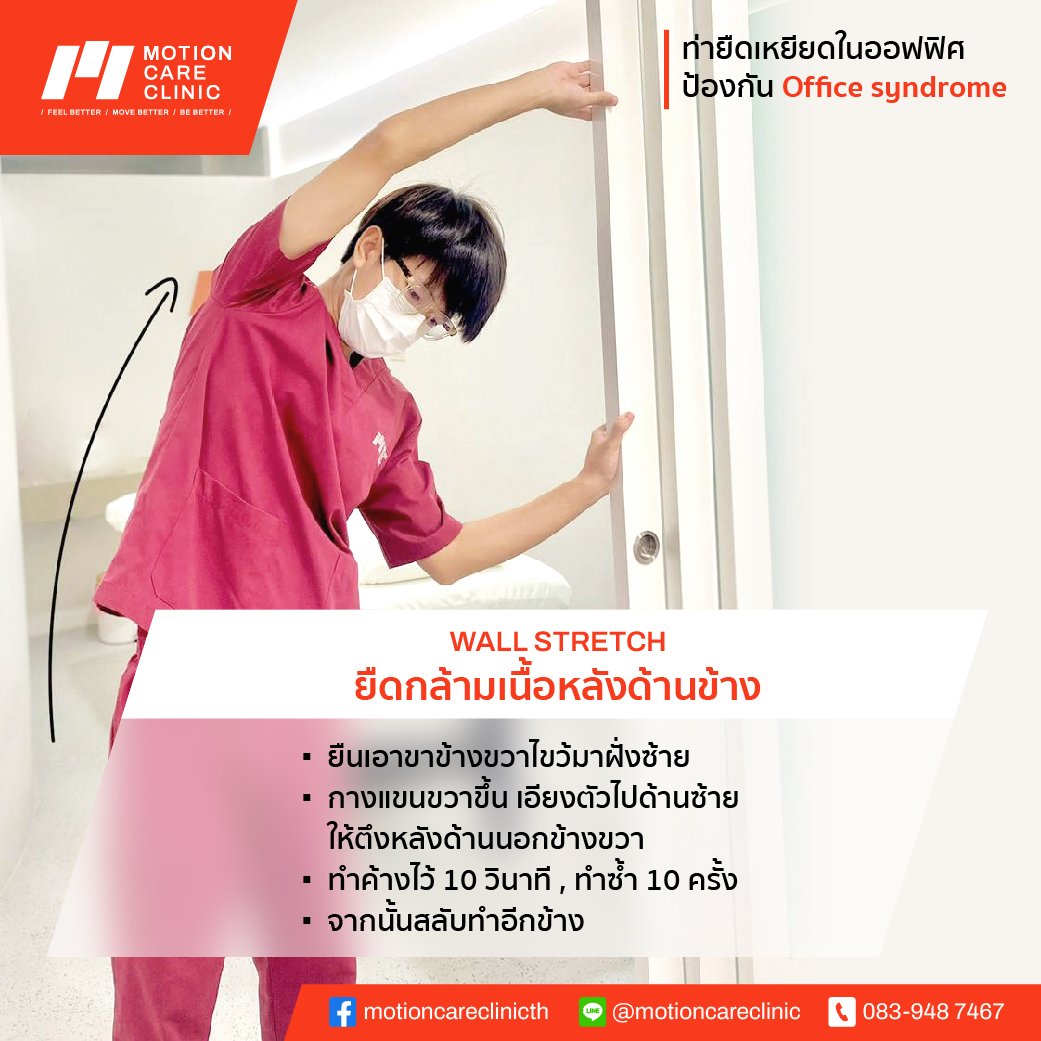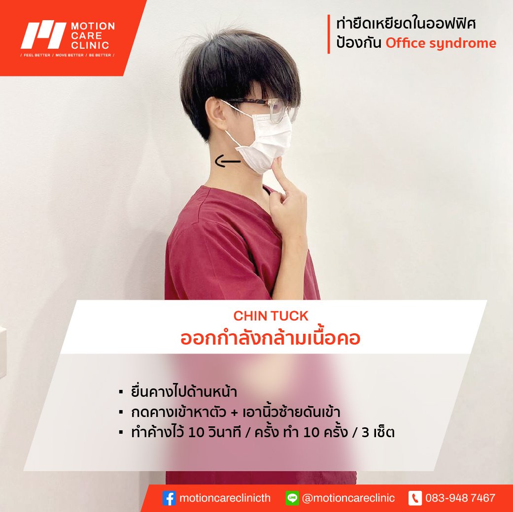 รู้หรือไม่ office syndrome ป้องกันได้ด้วยท่าออกกำลังกายง่ายๆไม่กี่ท่าระหว่างทำงาน ! นั่งนานๆ ปวดตัว ปวดคอ ปวดบ่า อย่าลืมแอบยืดเส้นยืดสายซัก 5 นาที ชีวีจะสุขสบายขึ้นอีกเยอะ วันนี้ motion care clinic นำท่าออกกำลังกายใน office เพื่อป้องกัน office syndrome มาฝากกัน 5 ท่า ทำแค่ท่าละ 1 -2 นาที เท่านั้นเองค่า